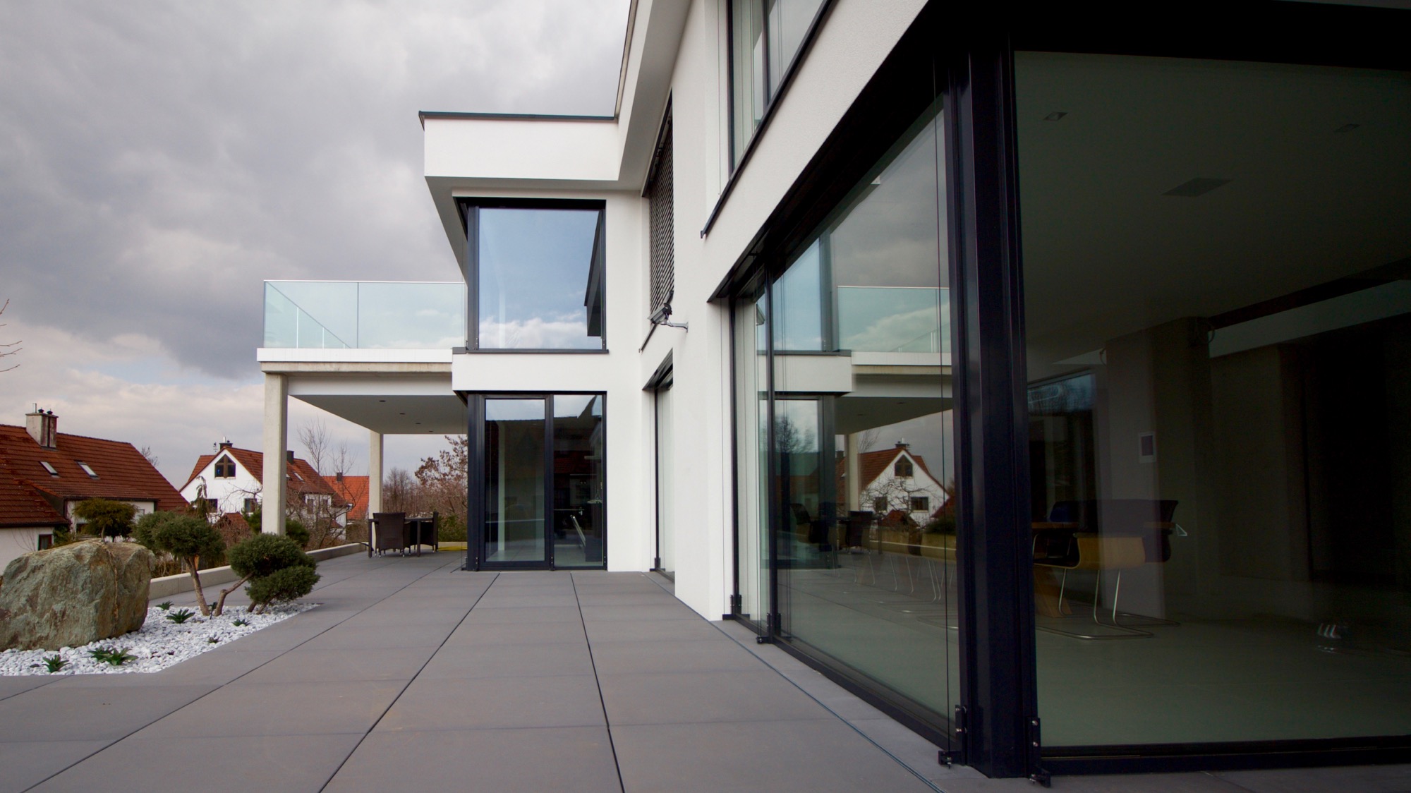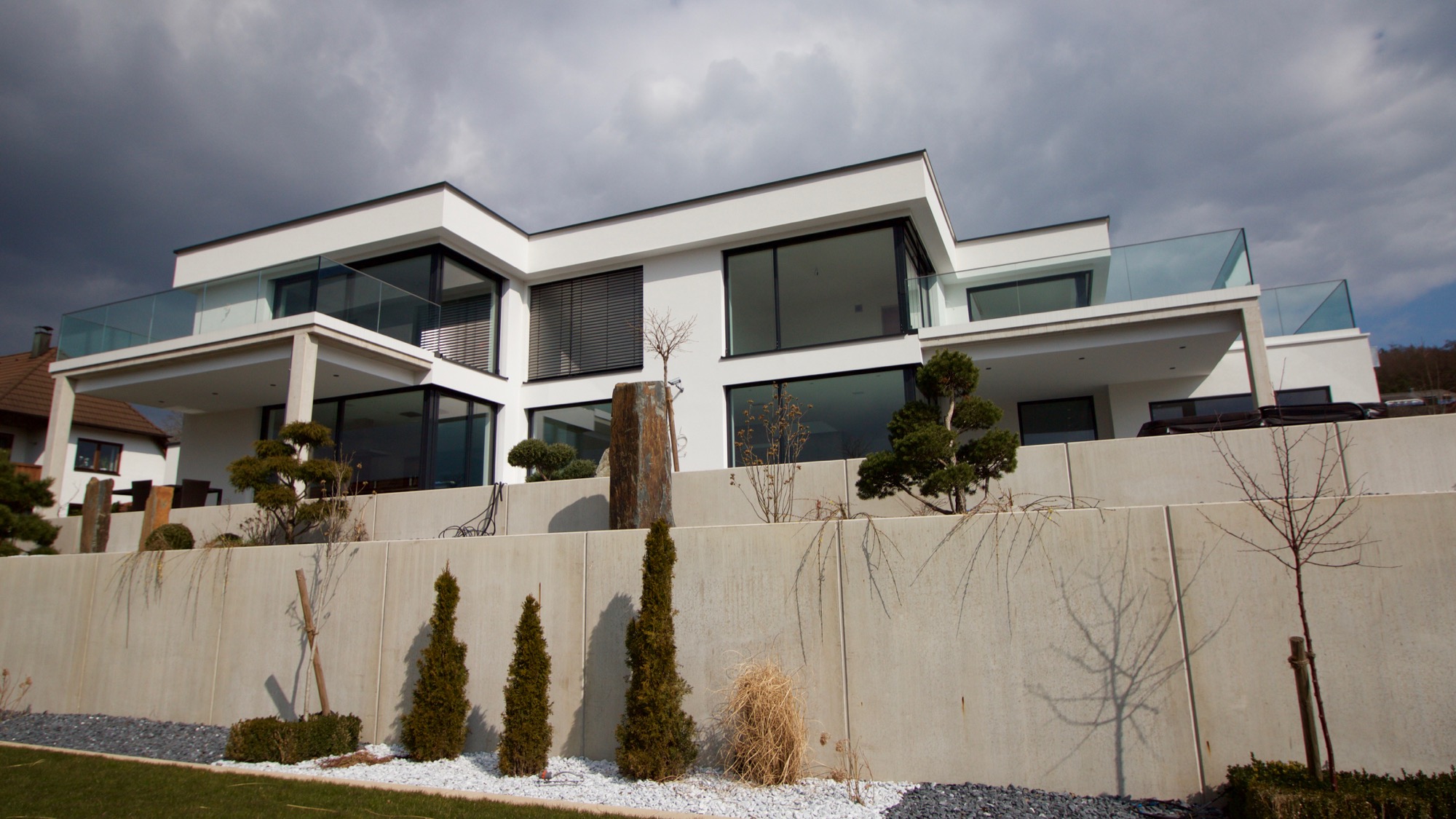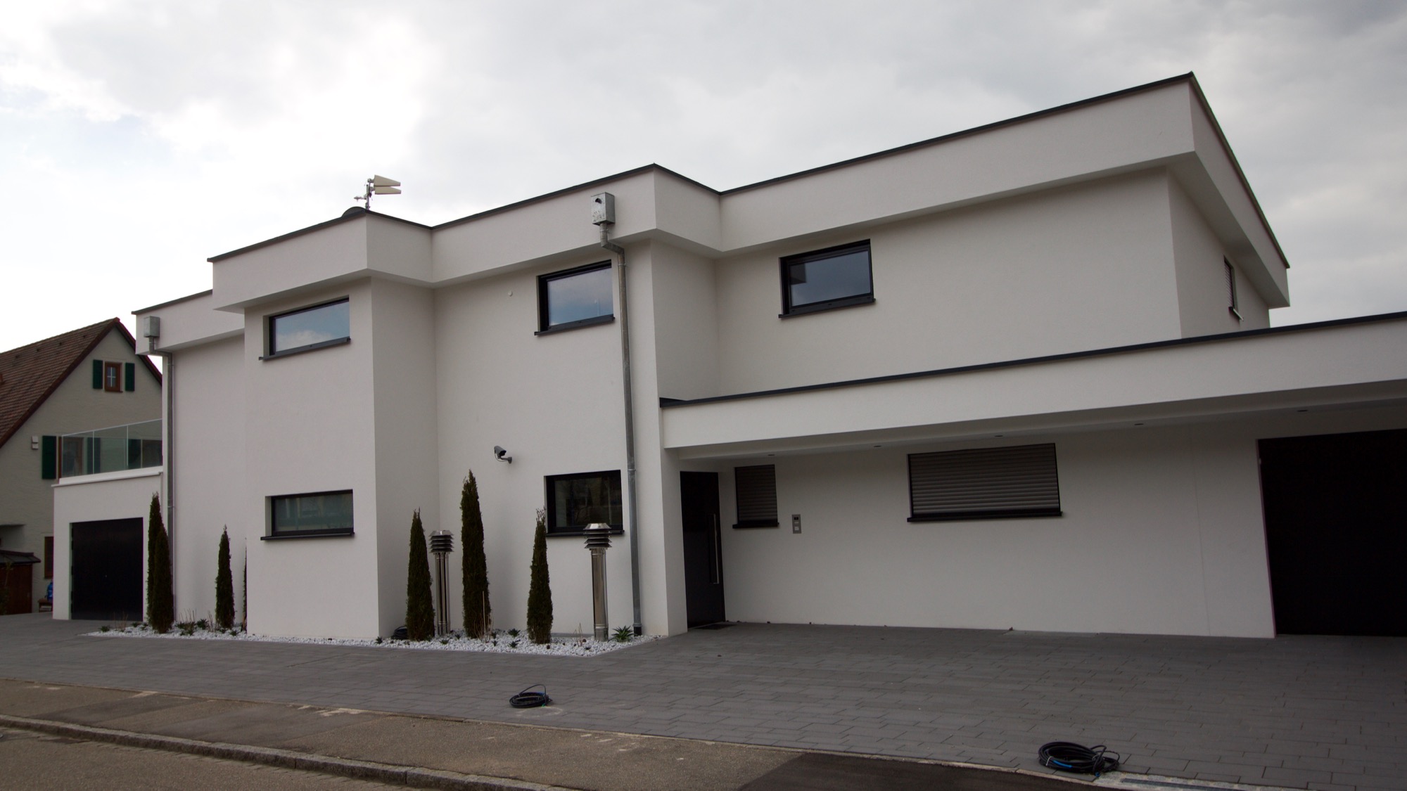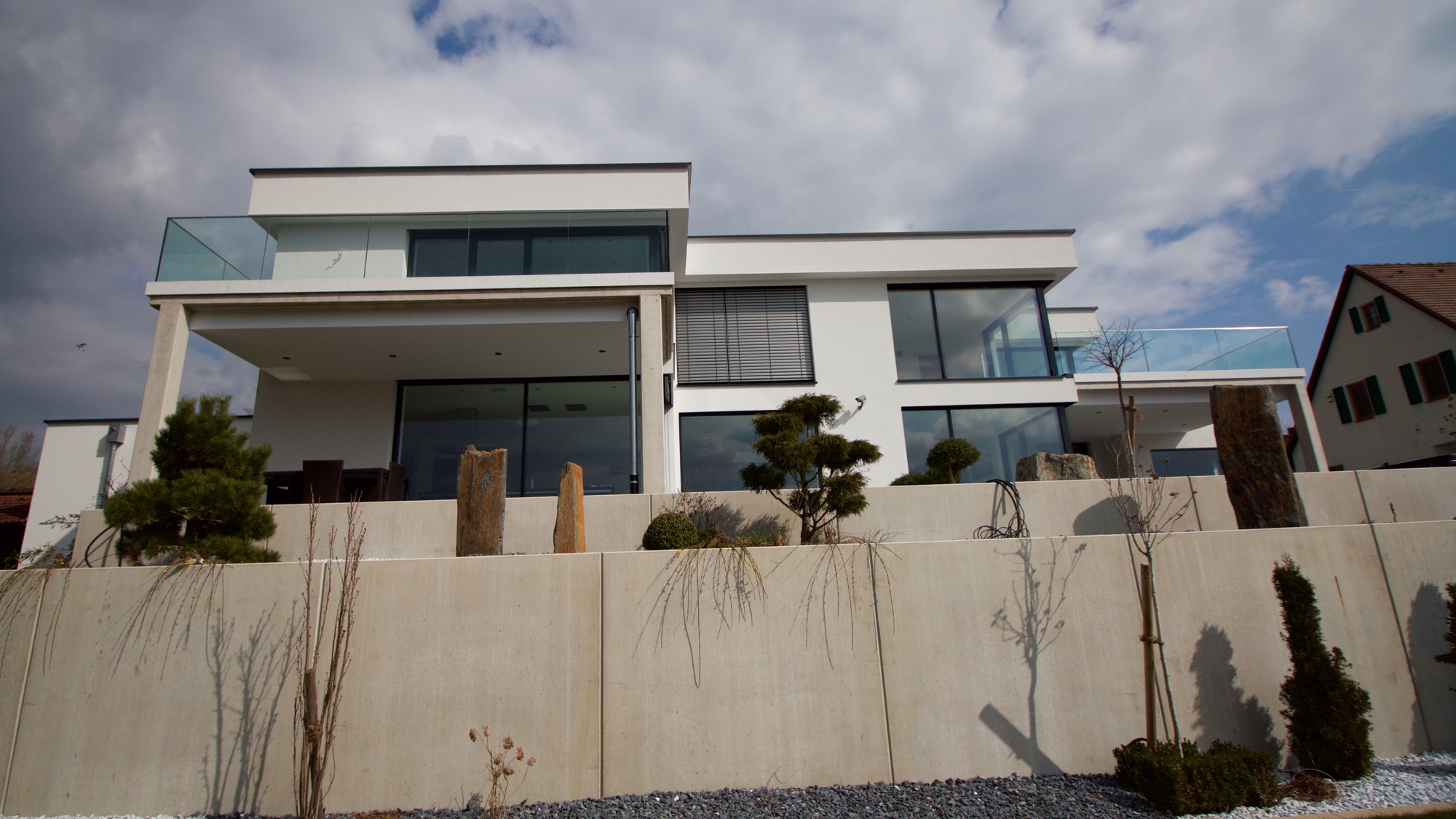 Das moderne Einfamilienhaus liegt in einer exponierten Lage in Weißenburg. Der Bauherr wünschte sich ein modernes Gebäude mit großen Glasflächen, um den tollen Blick über Weißenburg aus möglichst jeden Zimmer einzufangen.