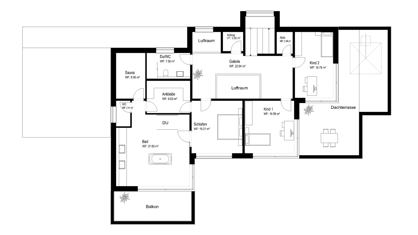 Modernste Haustechnik wie Bus-System und Multiroom-Audio sind ebenso integriert wie ein komplettes Heimkino im Keller.